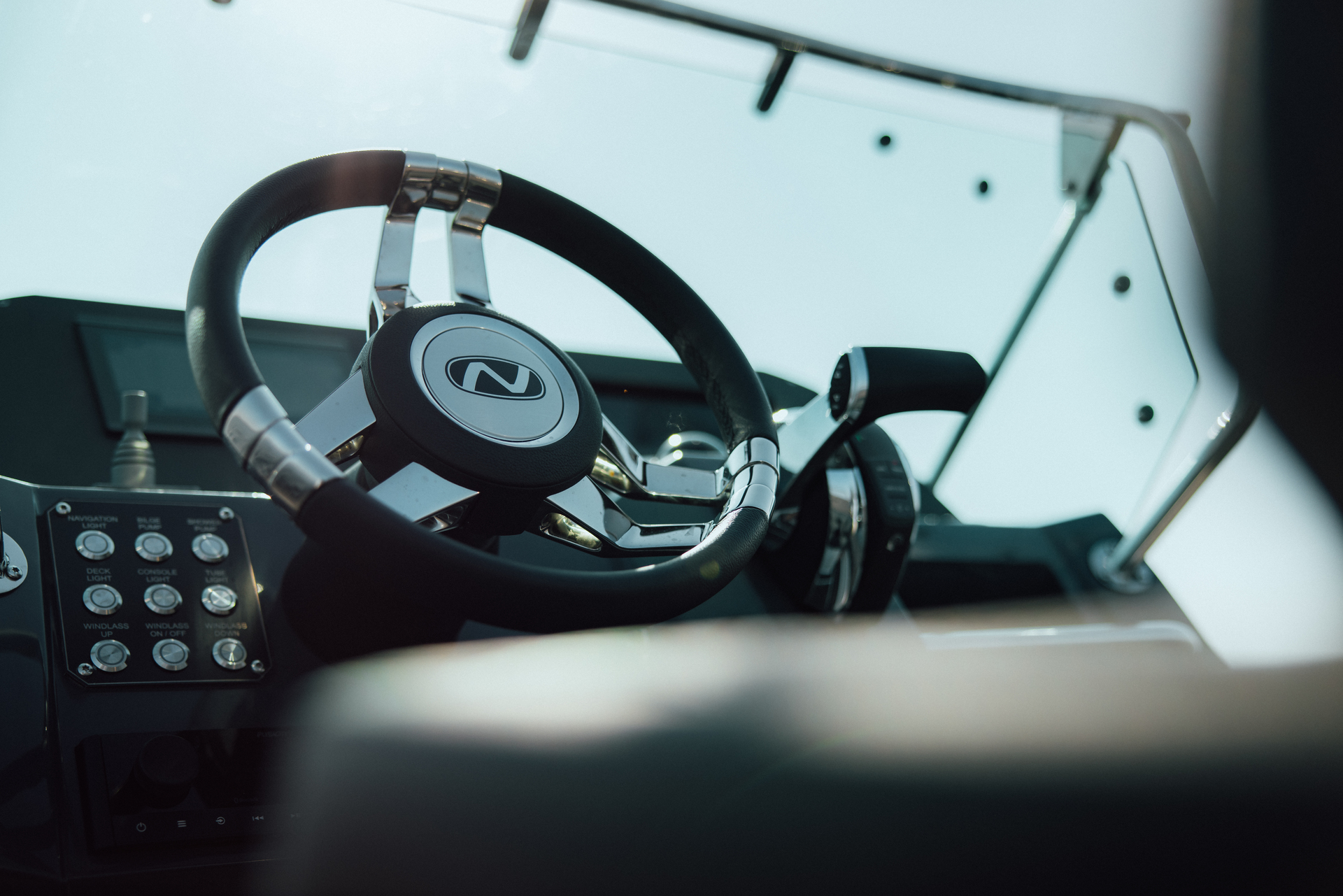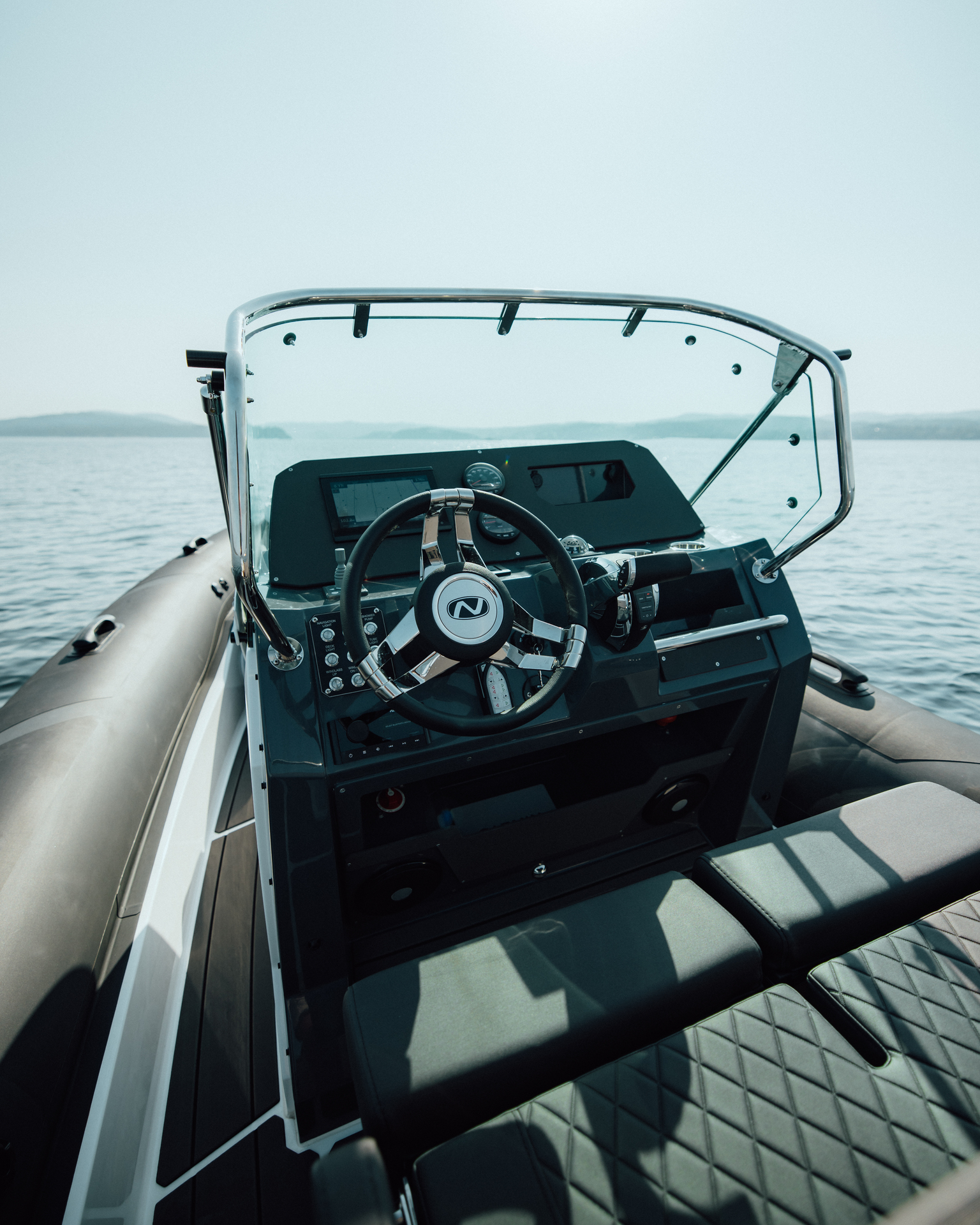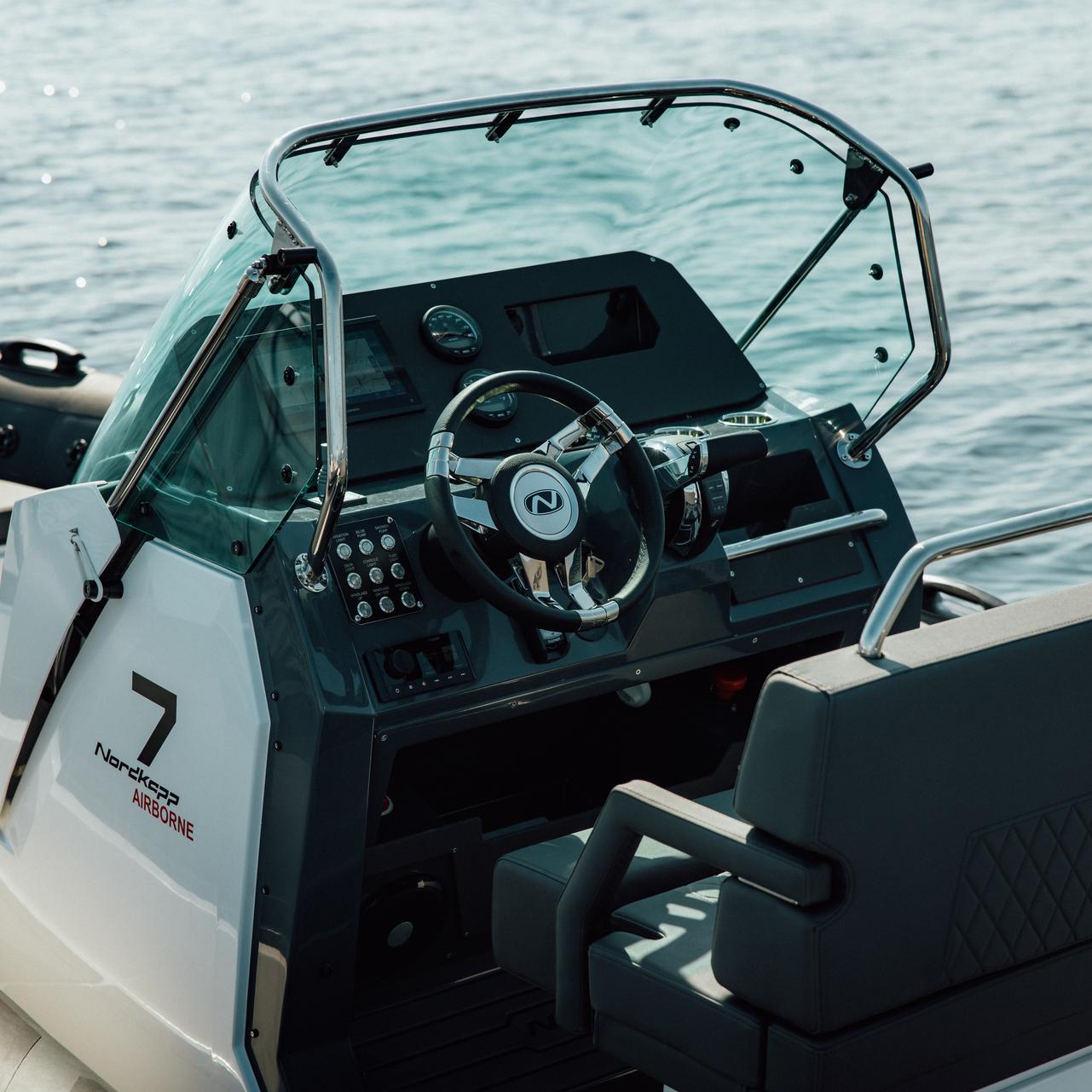 Ergonomic helm with clear instrumentation designed for confidence at the wheel.