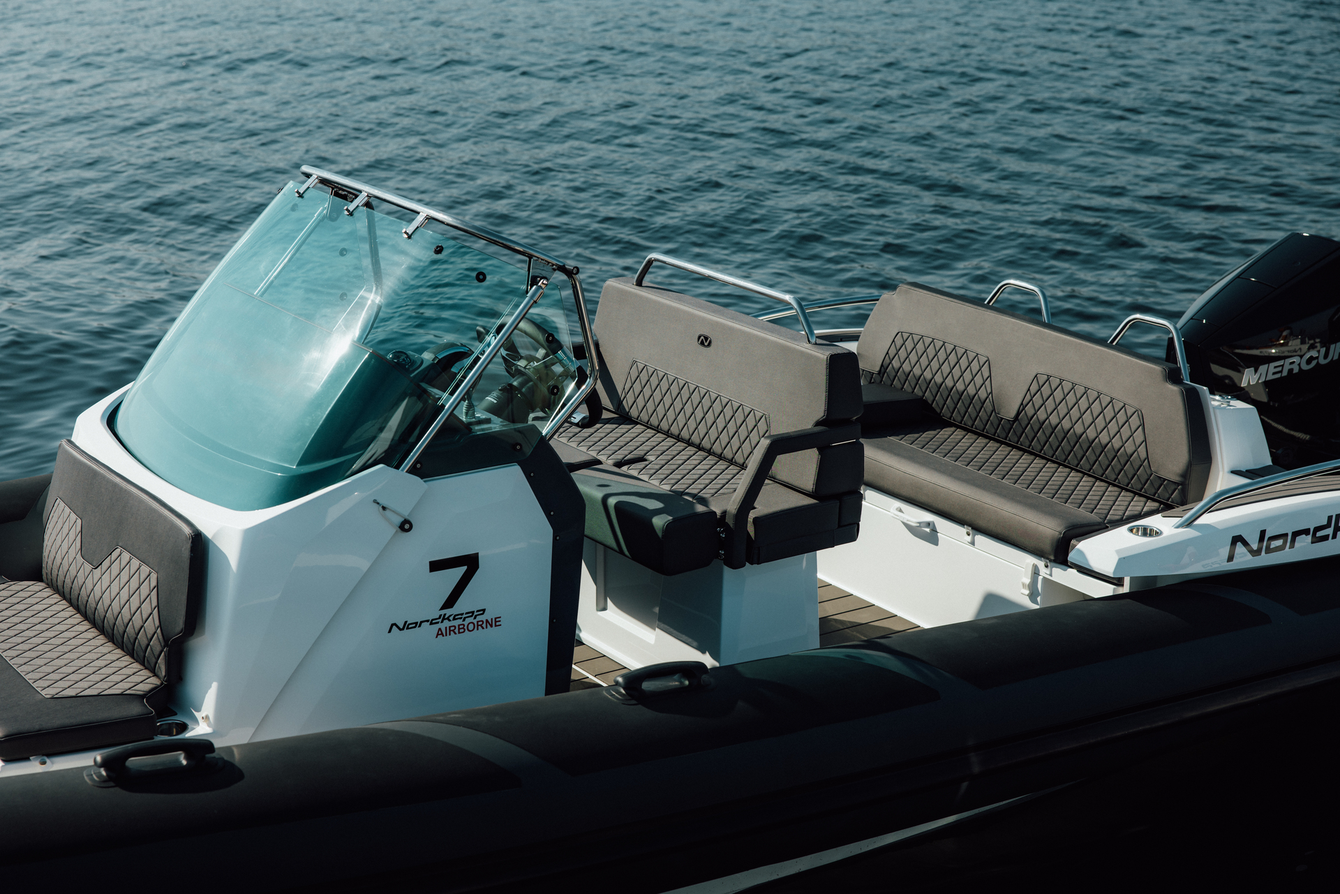 Sharp handling and high-speed stability from the deep-V hull and premium Mercury outboard power.