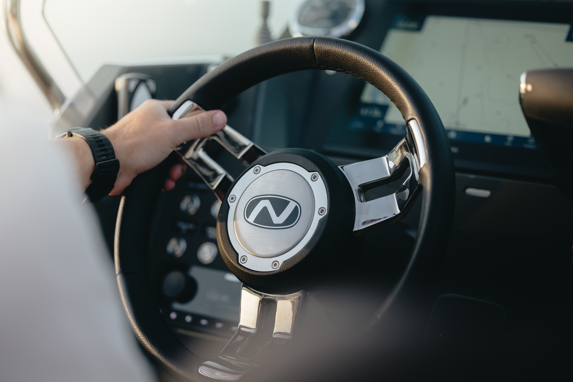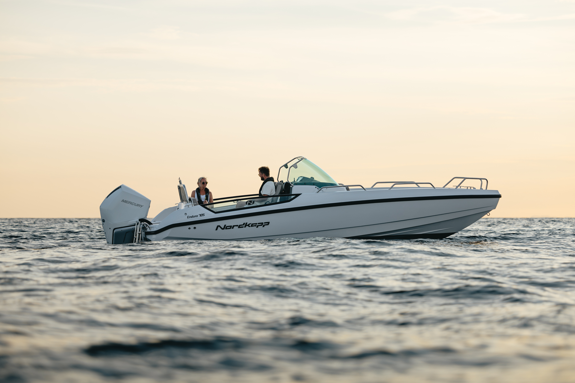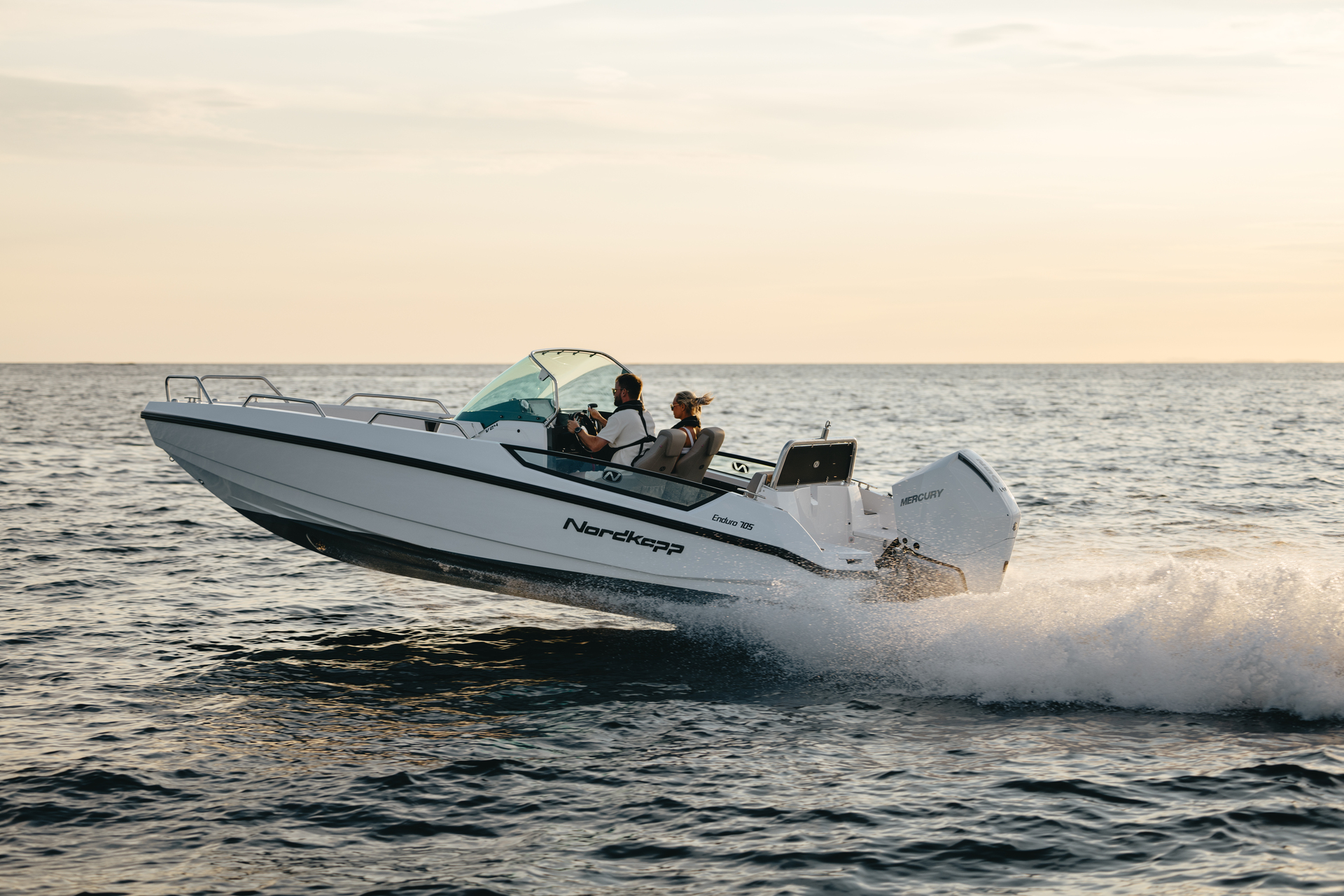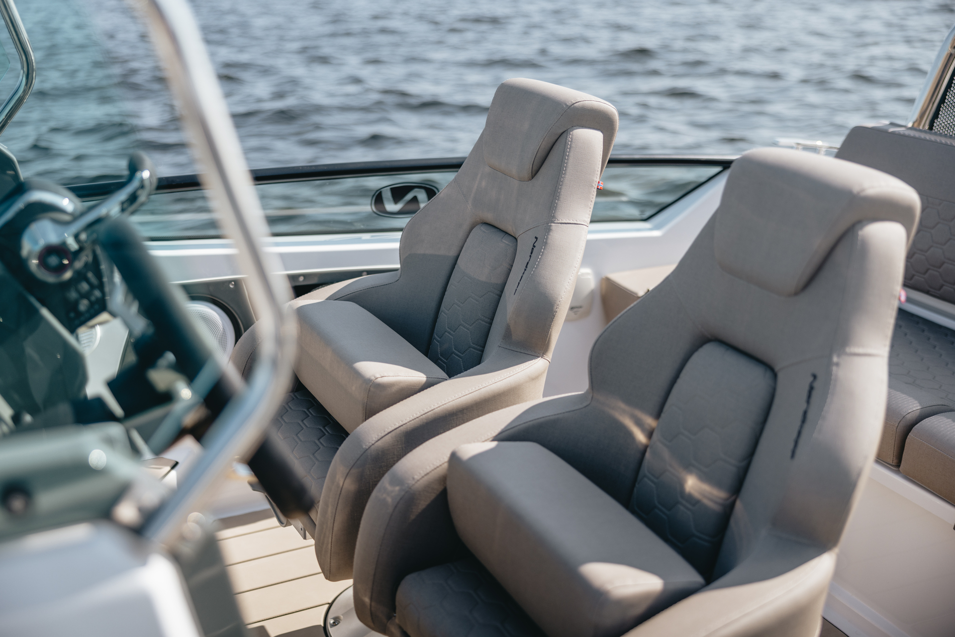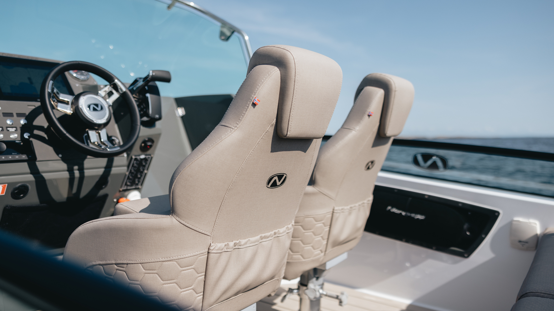 Solid GRP construction with premium fittings, hydraulic steering and ergonomic helm reflect Nordkapp’s craftsmanship.