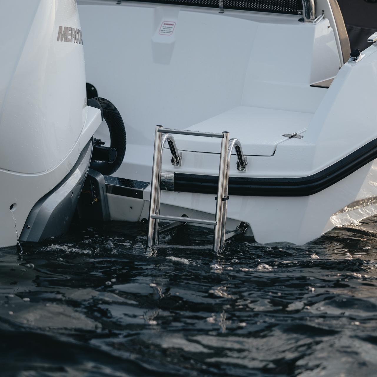 Supports outboards up to 250 hp for tailored performance—from spirited cruising to efficient touring