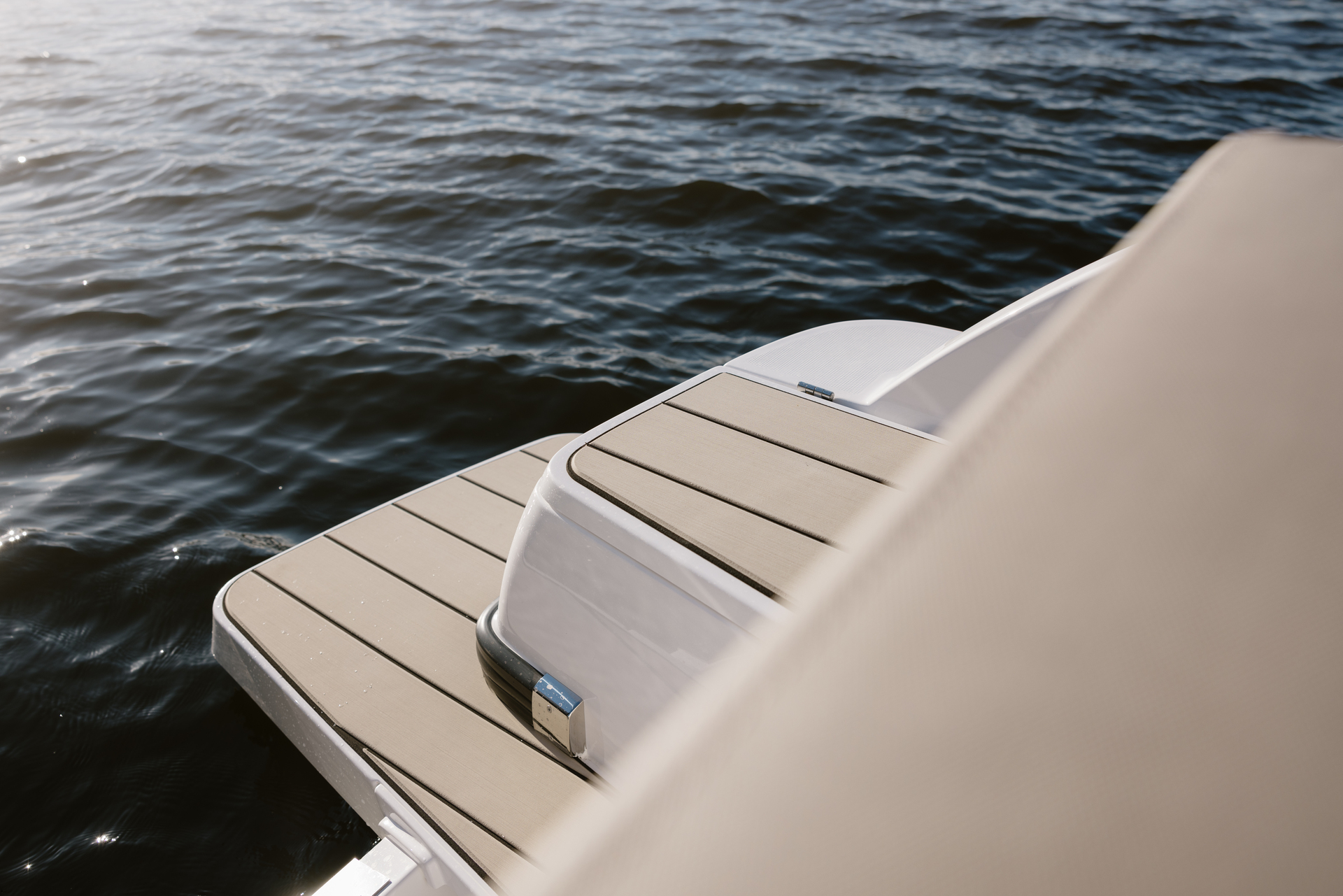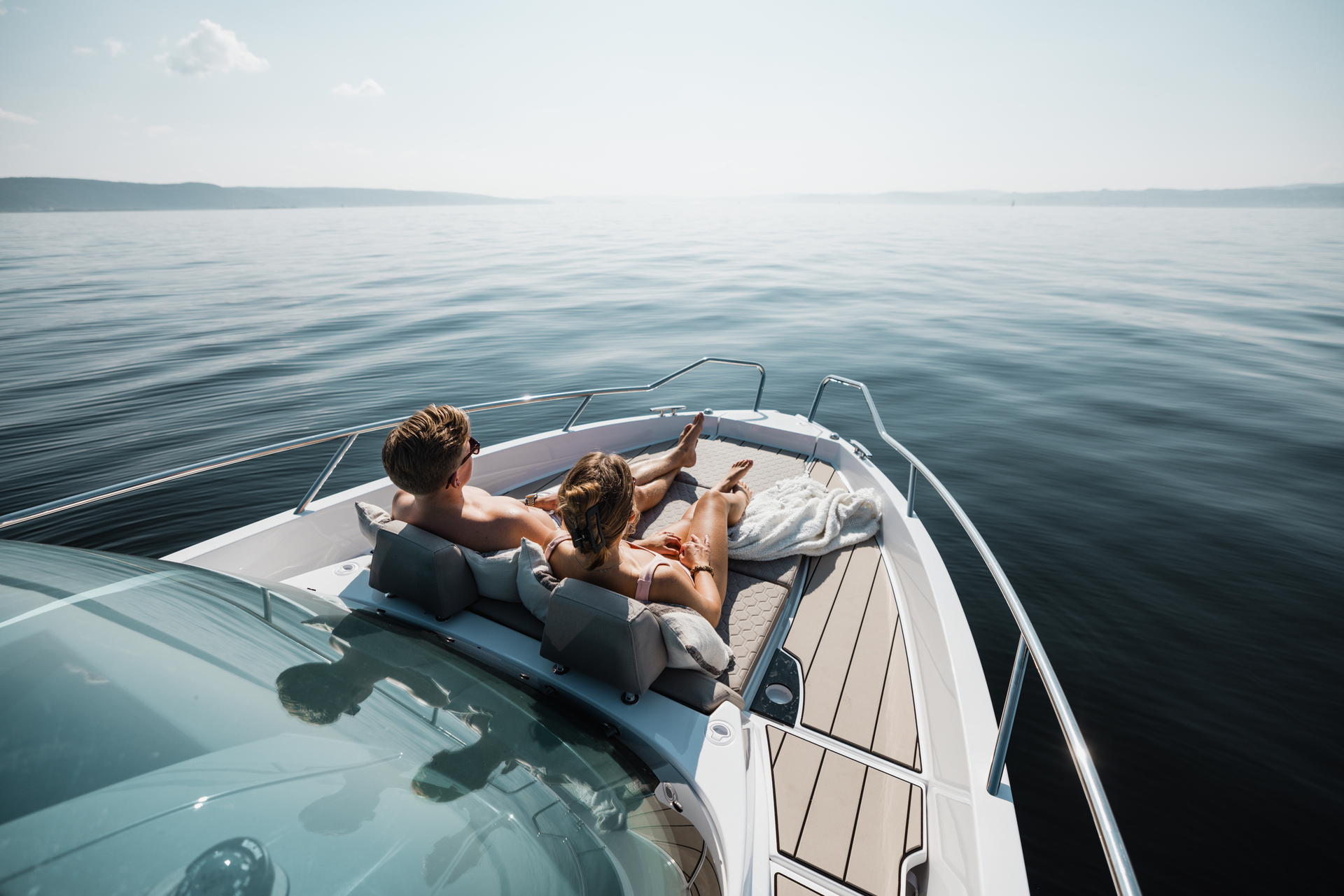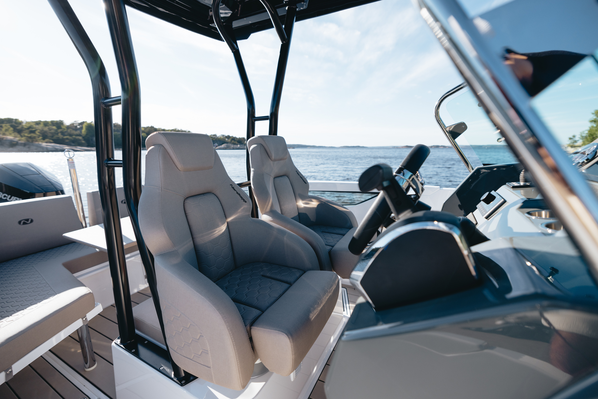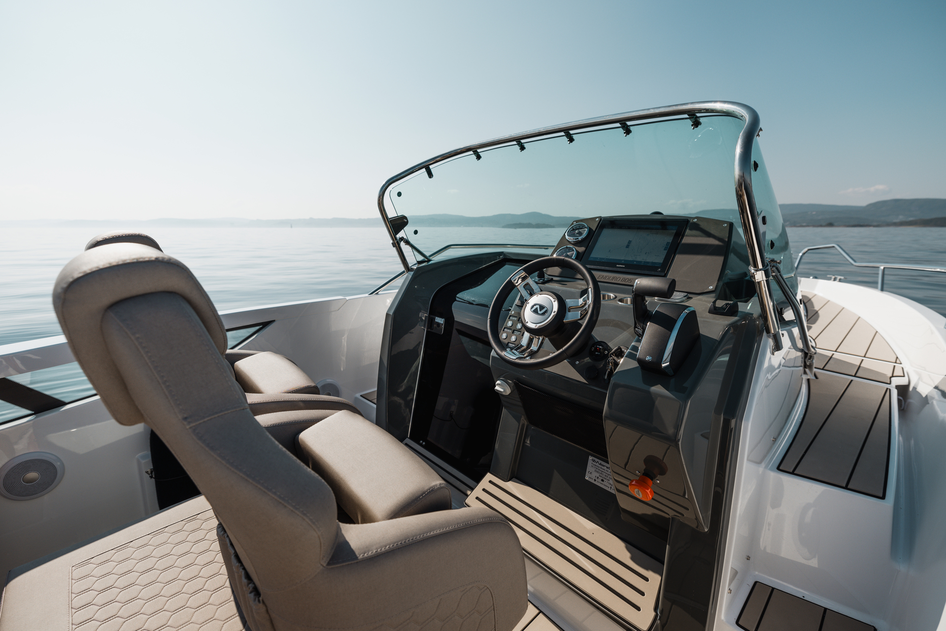 Stylish minimalism, premium materials, hydraulic steering, S‑Deck flooring and durable GRP hull reflect thoughtful craftsmanship