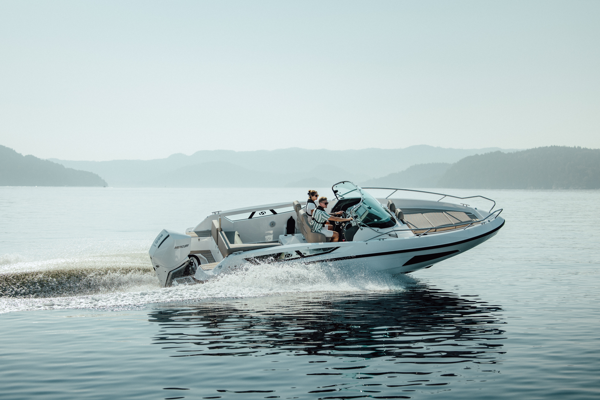 Configurable with a range from 250 up to 400 hp Mercury engines to suit your style of cruising up to the most demanding accelartion thrills.