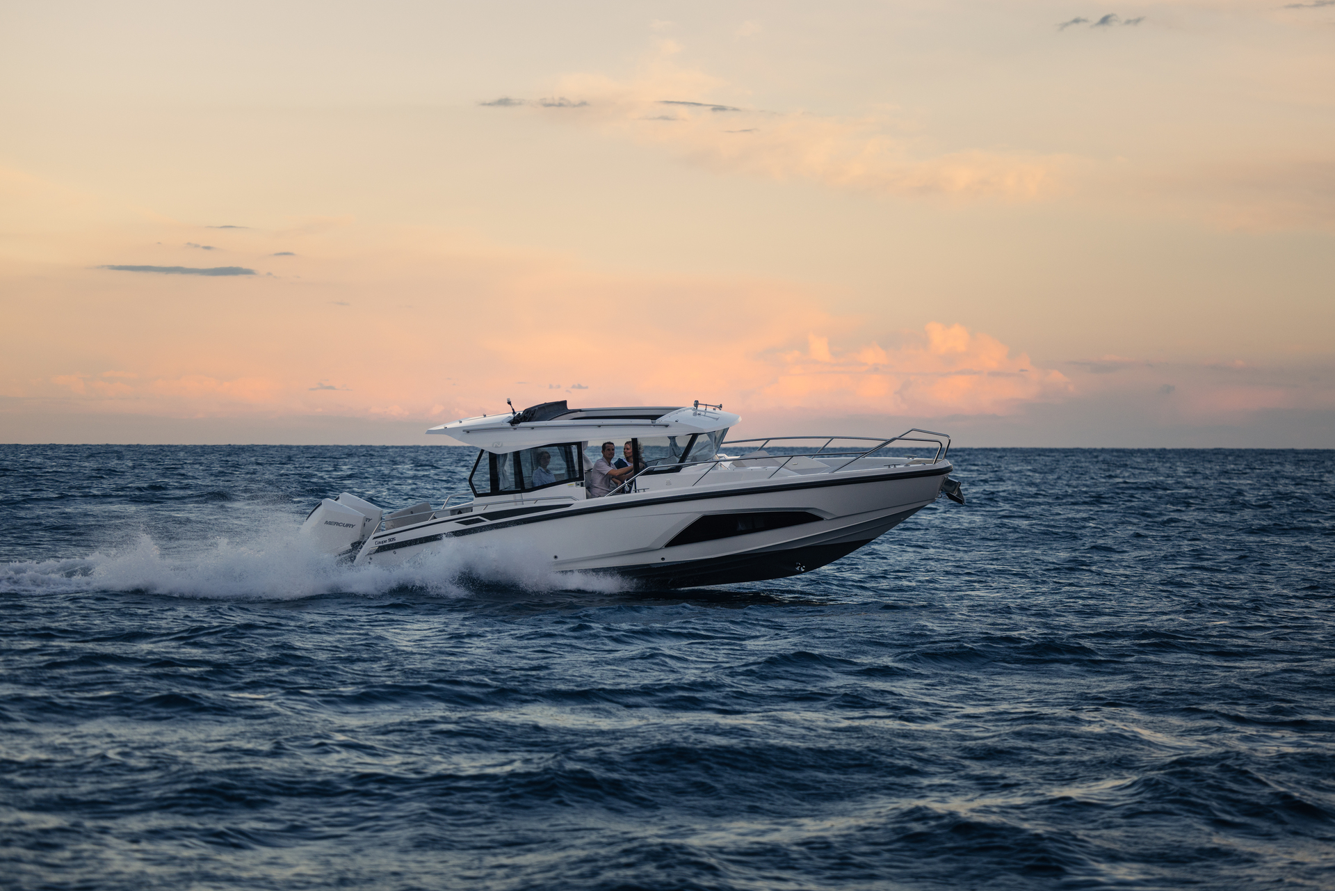 Engineered for up to 500 hp (or up to 600 hp for the V12 version), the Coupe 905 offers exhilarating acceleration, tight handling, and top speeds even above 50 knots with excellent fuel efficiency (@ 30knots ≈ 2 L/nm)
