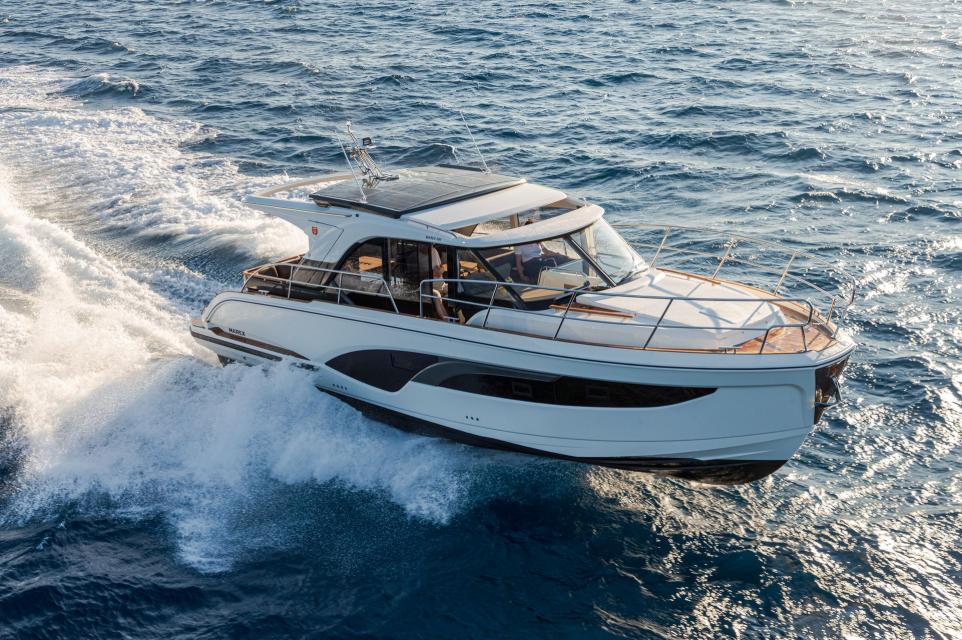 Premium GRP construction, stainless hardware, spacious cabins, high-quality joinery, solar power option and practical details reflect Marex’s Scandinavian build ethos