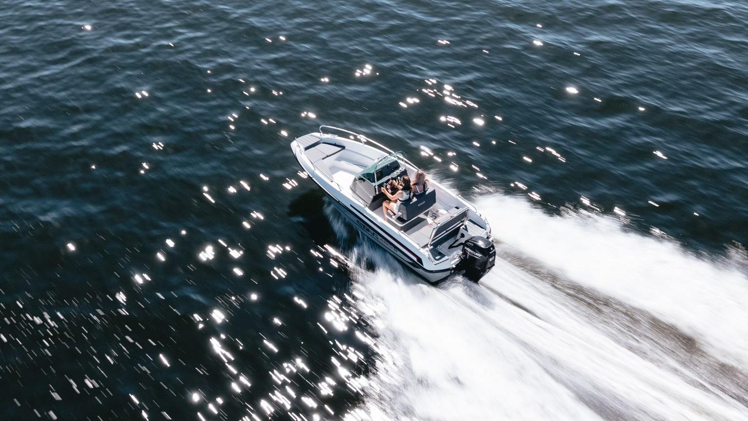 In addition, you will find plenty of living room for luggage under the console and driving bench, as well a spacious and comfortable aft sofa. All these elements make the Sting 485 S perfect for those who want carefree boating and can quickly take you out on the short summer trips in the archipelago.