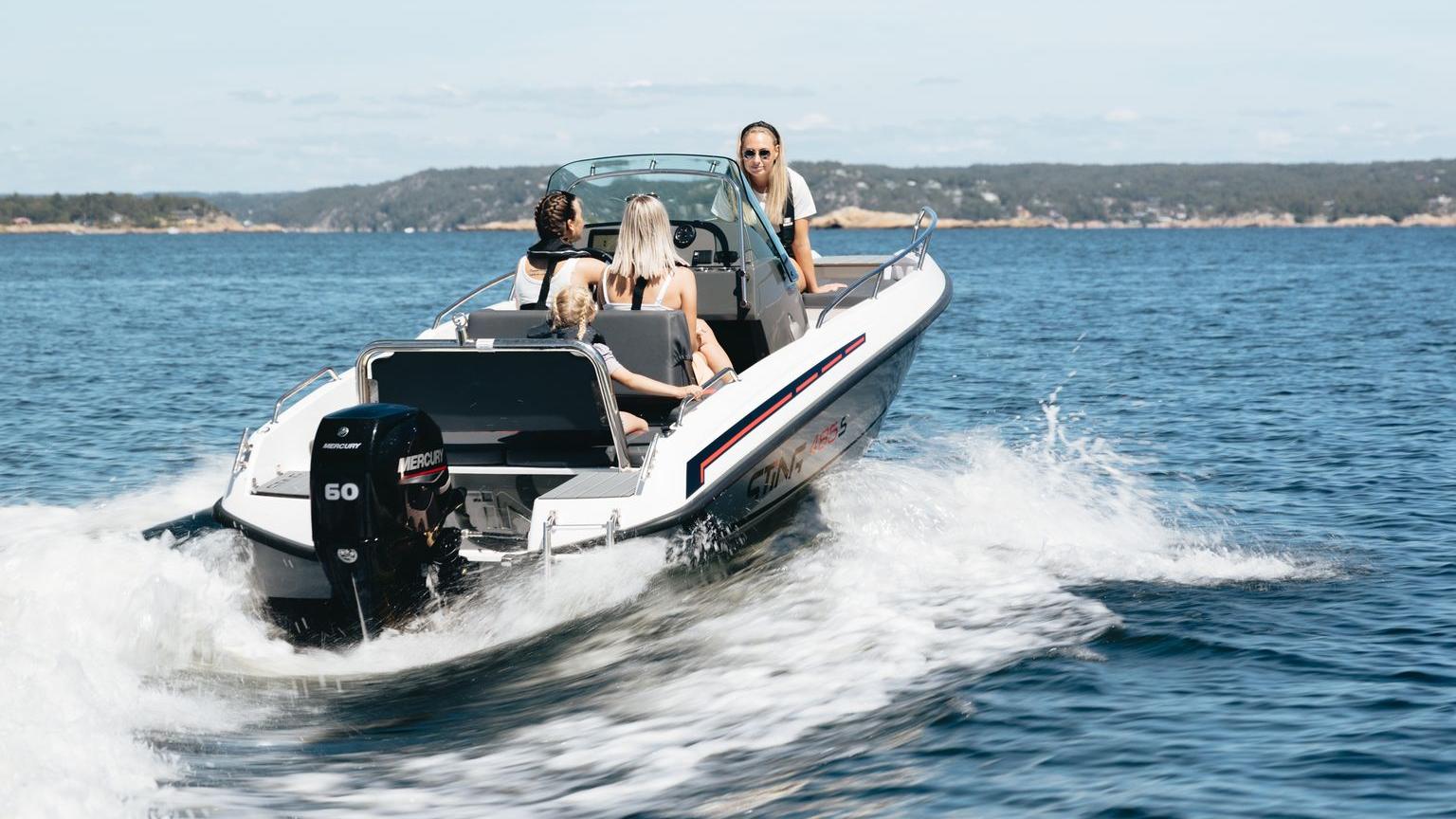 The Sting 485 S is a perfect archipelago jeep for those who use the boat for shorter trips in the archipelago. The 485 S is designed so that you can move in and out of the boat more easily, at the same time as it provides easier loading and unloading with a wide bow and wide door.