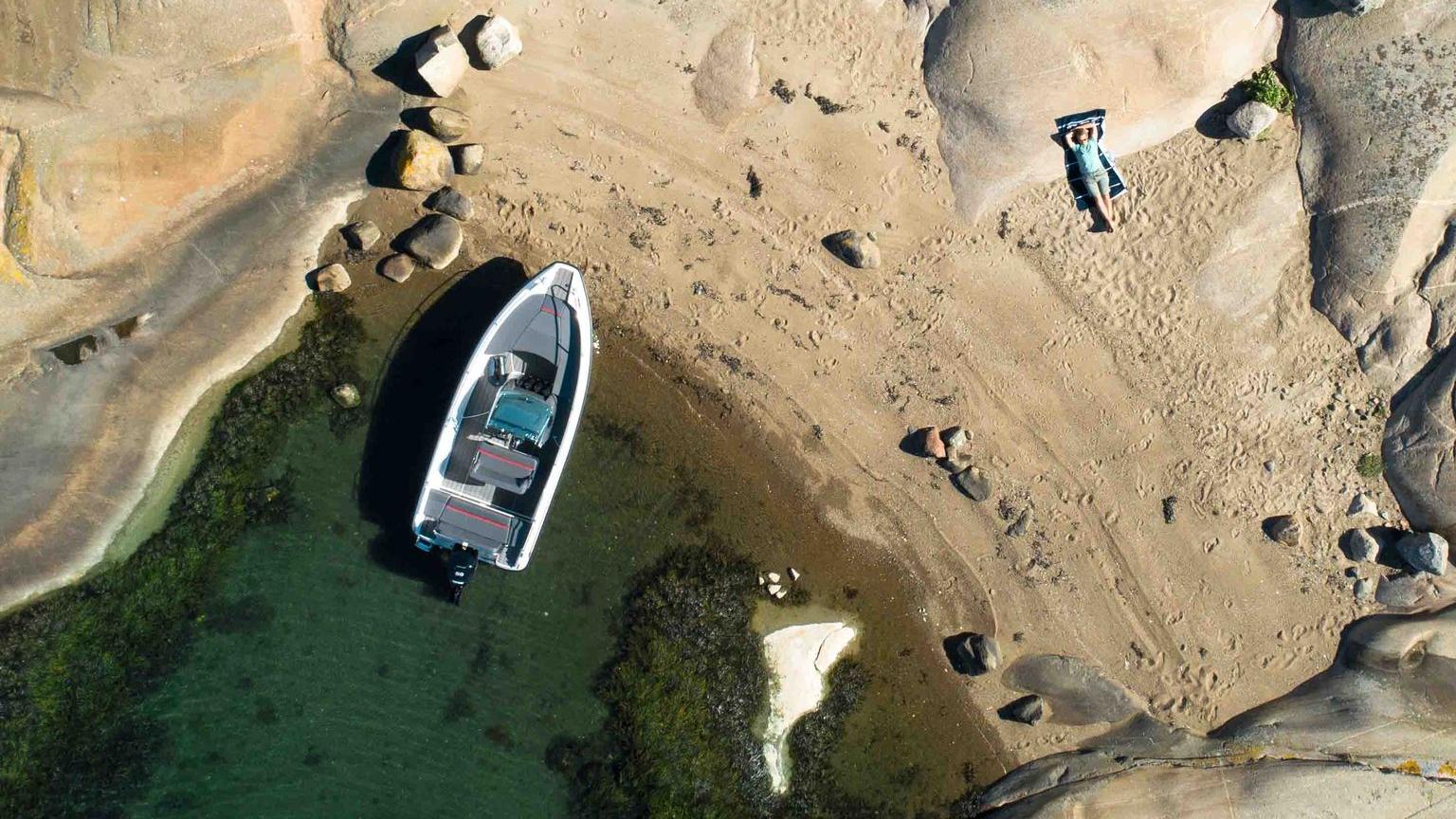 The hull is characterized by the fact that it takes the sea easily while keeping you dry from sea spray. Good, functional living spaces both in the bow, under the cockpit, in the bench seat for driver and passenger, and not least in the aft bench mean that you can easily pack up and head out on a trip to the islands when the summer days are at their best.