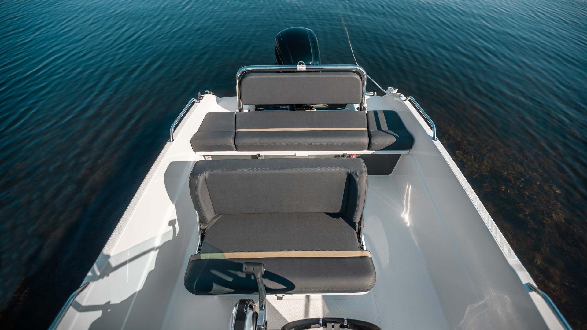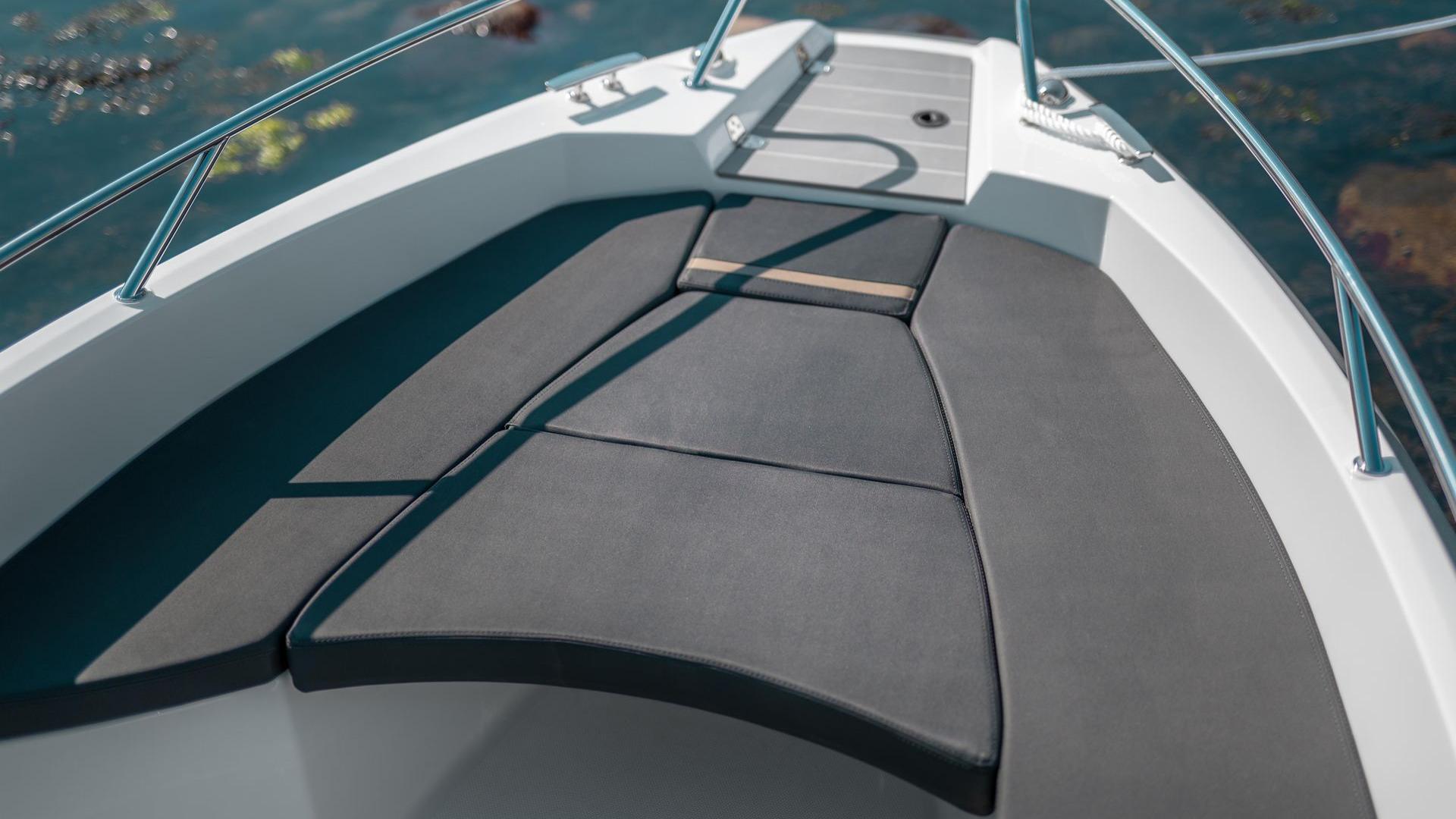 The benches in the bow have comfortable cushions that you easily attach to the bench itself. If you order your 530 S with a sunbed, it comes with an insert cushion that is placed between the benches. Put the boat on the swing, and it's ready to enjoy the summer days in the sunbed.