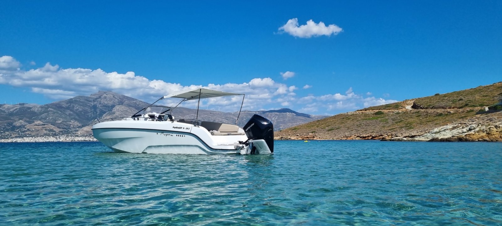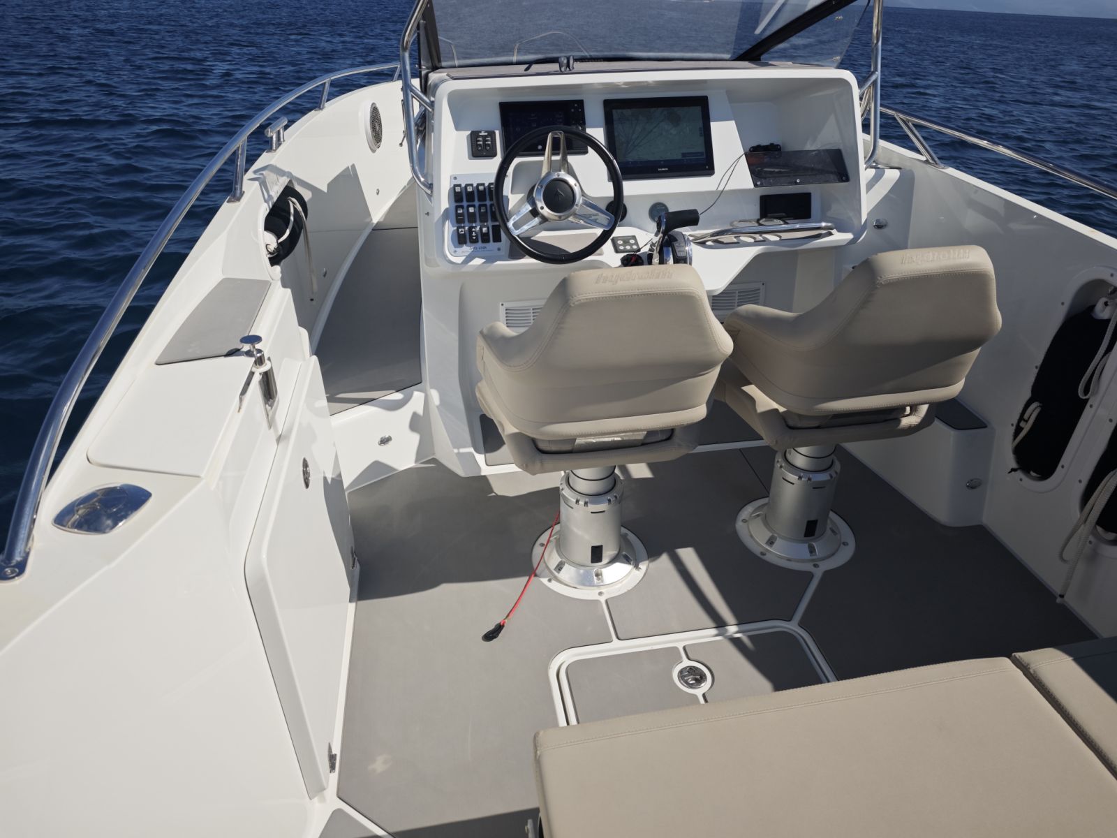 Twin stepped vaccuum infused deep Vee hull 24 degrees transom deadrise, Made in Norway.
