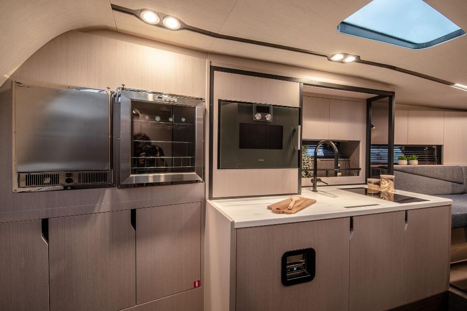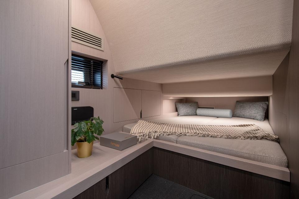 The WINDY Camira RS comes with an all new interior layout created by Design Unlimited, with two luxurious options to choose from. Offered with either a single or twin aft cabin, owners can tailor their new Camira RS to their specific needs. In the yachting industry, the Design Unlimited signature is synonymous with space optimisation, refined materials, and premium finishes.